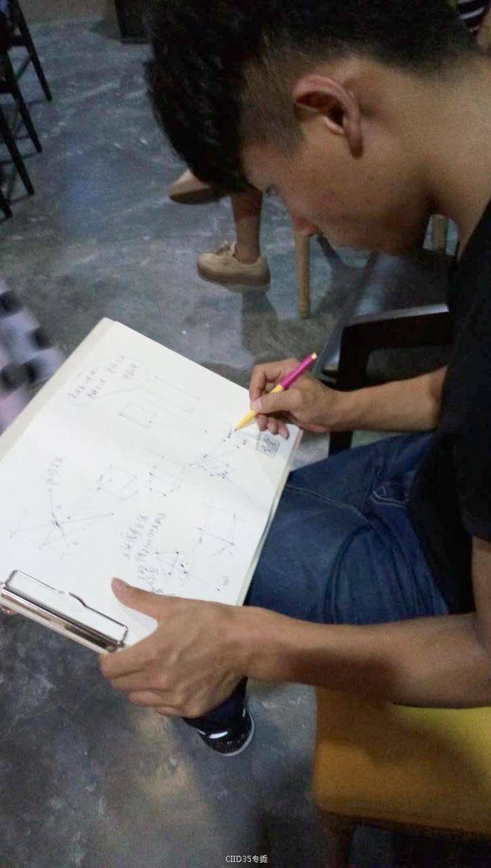 为了让大家更简单易懂一点透视画法中的“水平线”、“灭点”,二点透视画法中的“比例”问题。周老师以椅子为实例,现场向大家展示一点透视和二点透視的画法技巧。并布置手绘任务,由嘉宾现场完成,并逐一与大家交流。更是让大家仿佛回到了学生时代的课堂,聆听着老师的淳淳教导,回忆起自己的学习生涯。