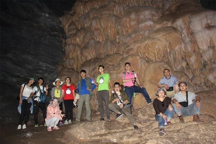 3月7日踏青第二天,队员们徒步前往皇帝洞,并在当地黎族青年的带领下进洞参观探险。皇帝洞的景观,不禁让队员们惊叹大自然的鬼斧神工,争相合影留念。中午在当地黎族青年的盛情邀请下,队员们与当地黎族同胞一同准备午餐,尽享当地特色美食。此外,黎族同胞还以欢快的歌声,表达欢迎之情。不禁让队员们感叹黎族人民的热情好客。
