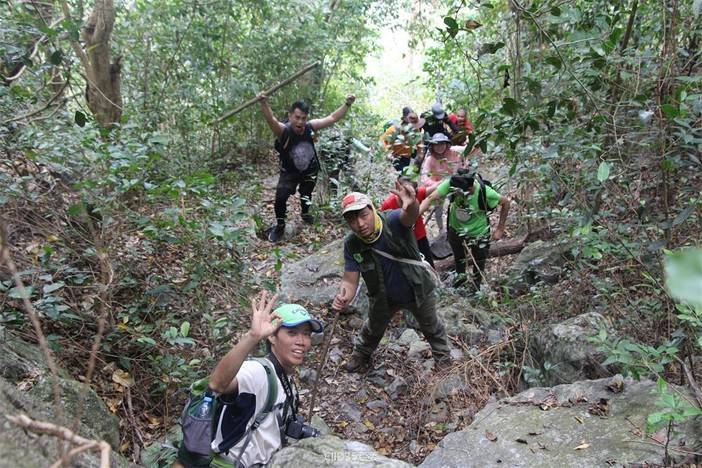 3月8日踏青第三天,队员们来到了有着“海南小桂林”美称的东方大广坝俄贤岭一带,乘船一览“海南小桂林”美景。随后,队员们在领队的带领下,开始了“征服”俄贤岭攀登之旅。历经8小时(上下山时间),队员们“征服”了俄贤岭第二峰(970米)。攀登的过程,亦让队员们感受到了“驴友”们攀登过程中的成就感,以及攀登顶峰“会当凌绝顶,一览众山小”的豪气感。