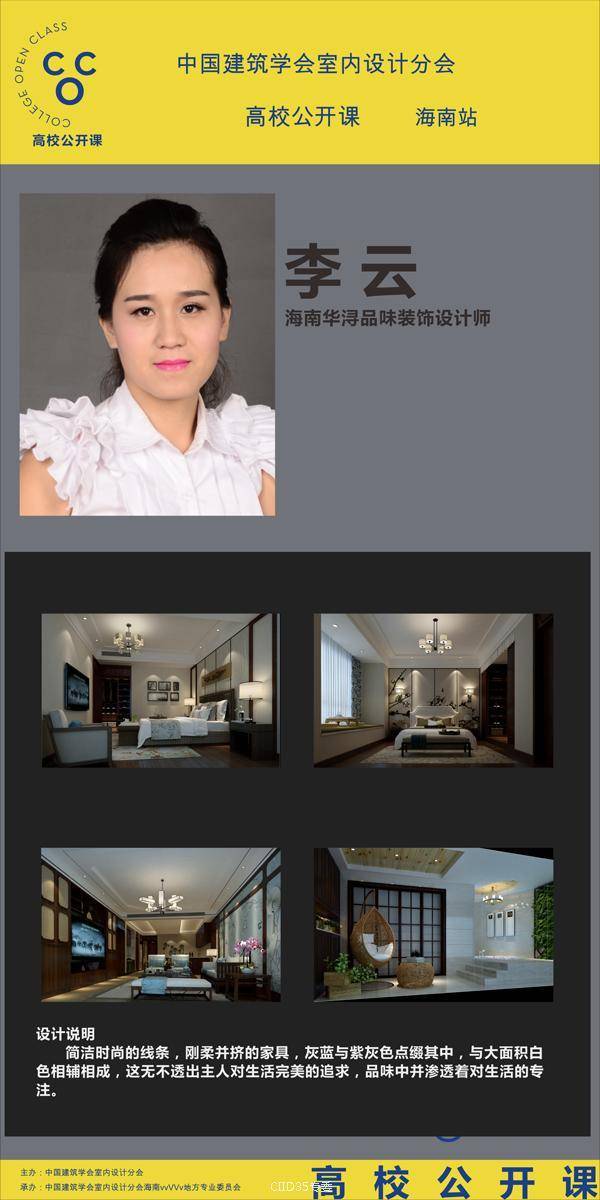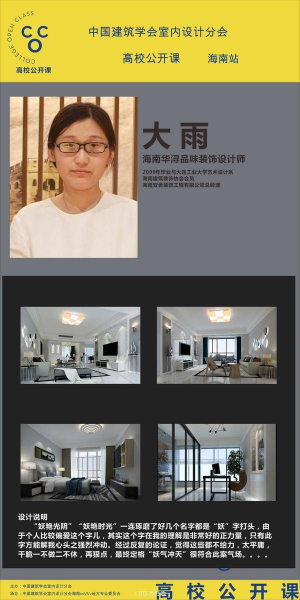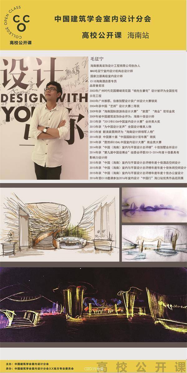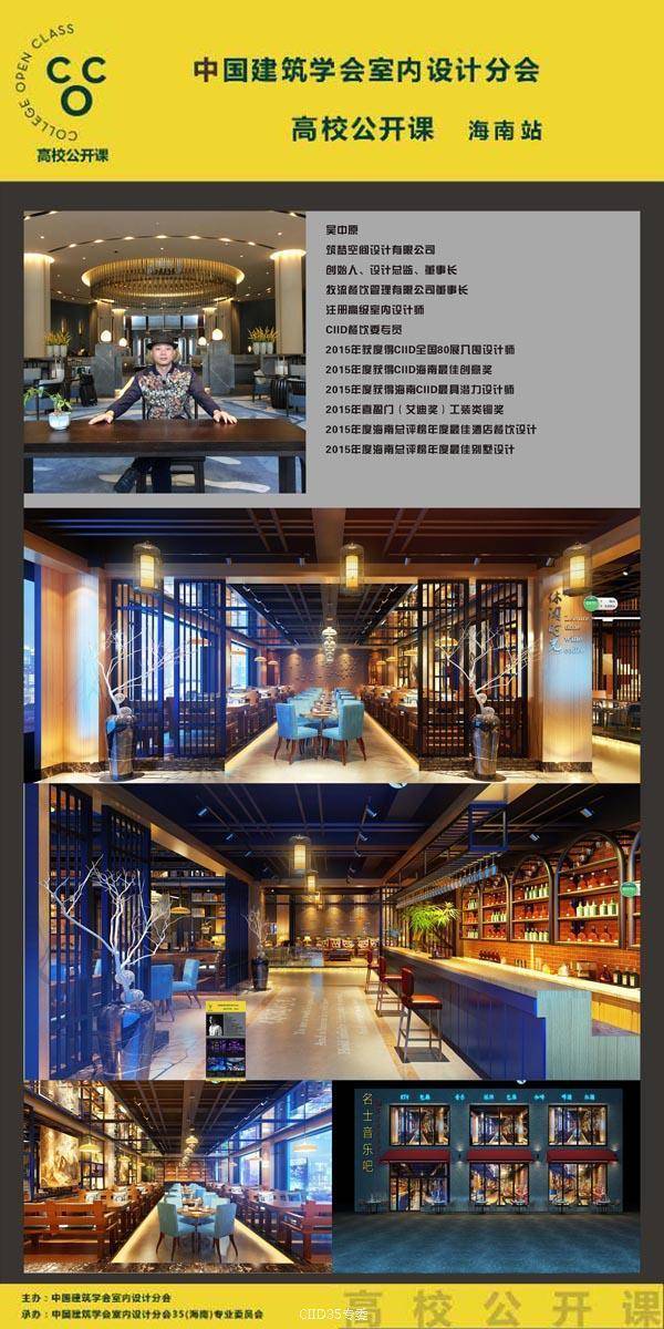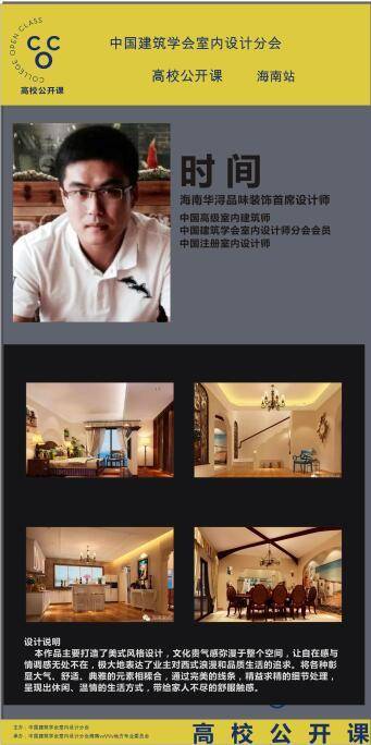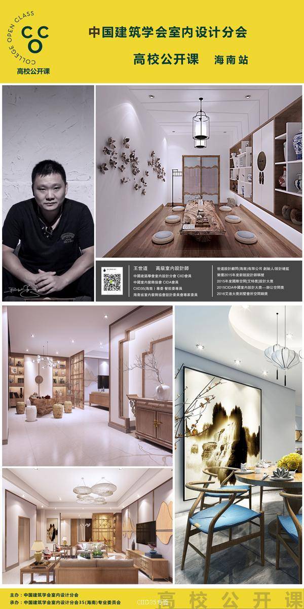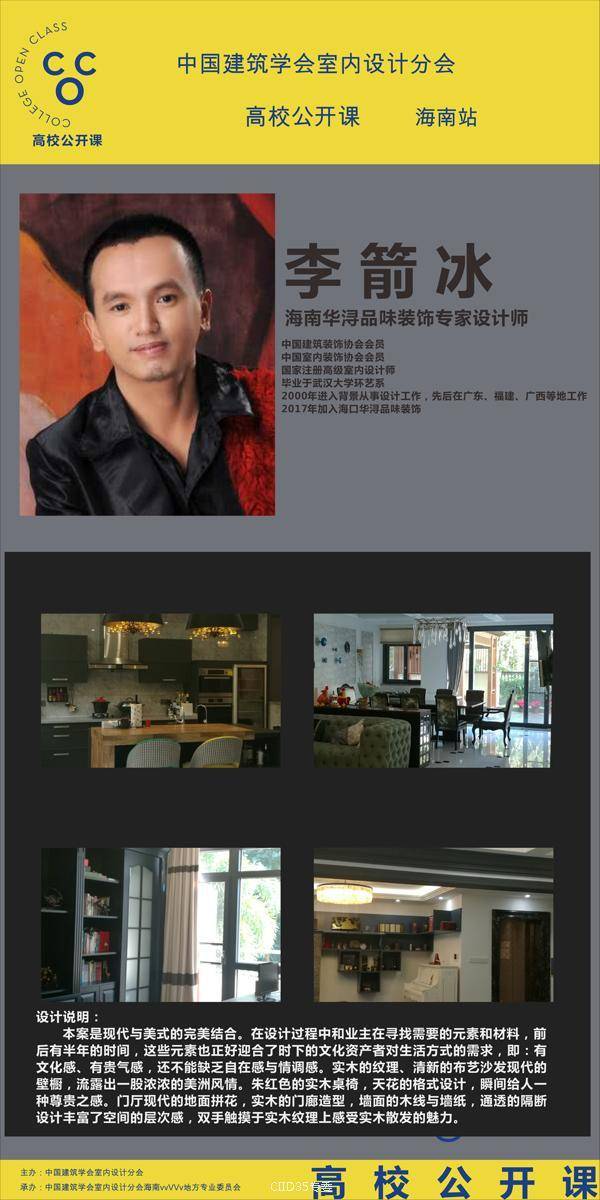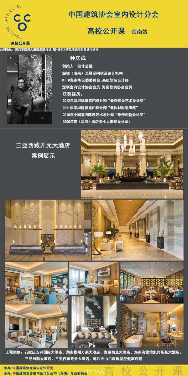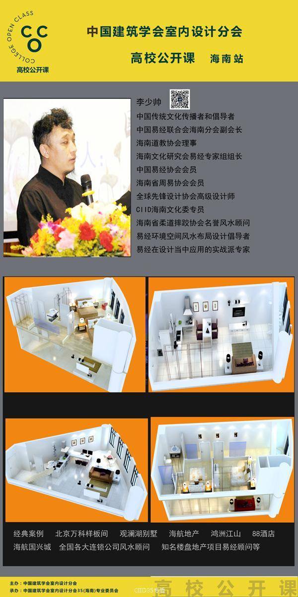 为架构优秀青年设计师与室内设计专业学生的桥梁。6月22日晚,CIID高校公开课暨暨海峡两岸大学生赛(海南站)第二课如期在海南师范大学美术学院(桂林洋校区)开课。本次活动由中国建筑学会室内设计分会(简称CIID)主办,CIID海南专委组织承办,海南师范大学协办,海口可然家居有限责任公司支持。