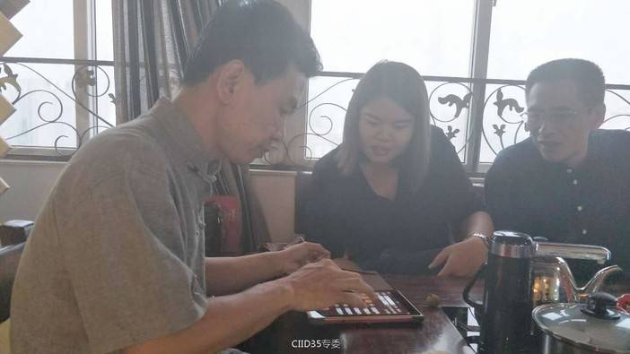 活动还未开始(距活动开始还有3小时),三位风水设计师与和鸿盛团队设计师聊“嗨”。镇团宝贝(罗盘)一摆,现场为姑娘预测一番。三位风水设计师你一言我一语,“逗”得姑娘喜笑颜开,乐开怀。