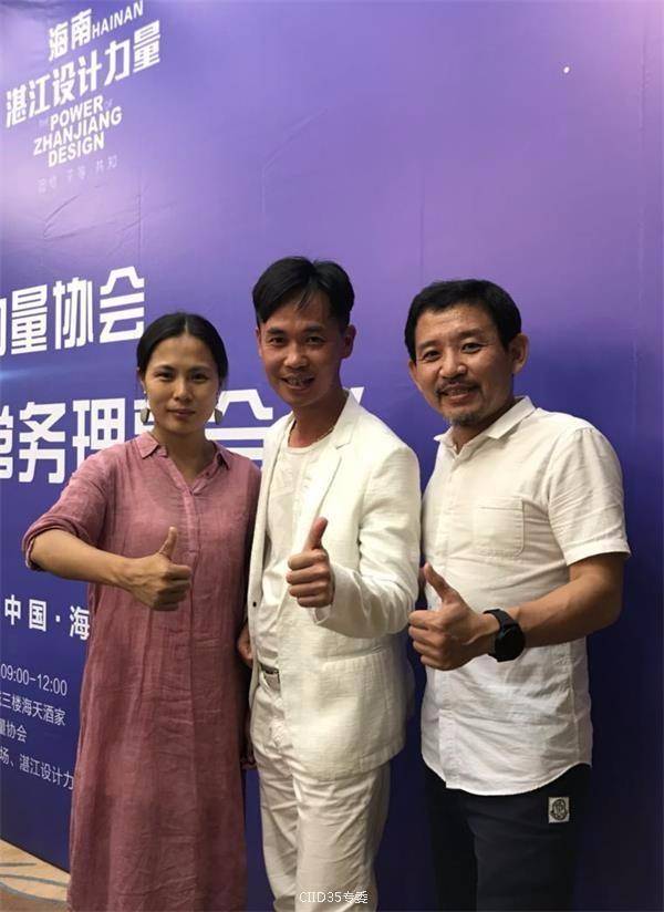 图为:CIID海南专委主任陈双(右)、秘书长林召丽(左)、湛江设计力量协会总会长、澳门国际设计联合会理事长黄治奇(中)合影