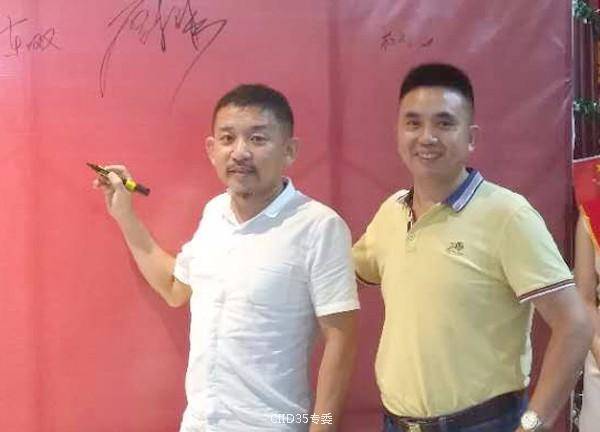 图为:CIID海南专委主任陈双参加帝亚答谢会现场签到并帝亚创始人廖根来合影