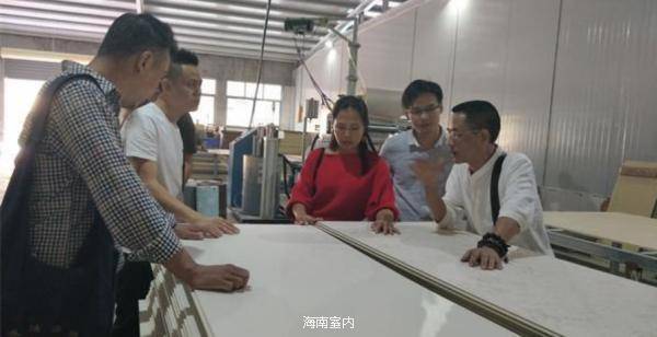 11月5日下午,CIID海南设计师中心秘书长林召丽,会员潘国梁、李少帅、刘奇等设计精英,在CIID材料委副会长田龙的陪同下,一起莅临迪卡龙竹木纤维集成墙面厂房参观,深入了解竹木千维集成墙面。
