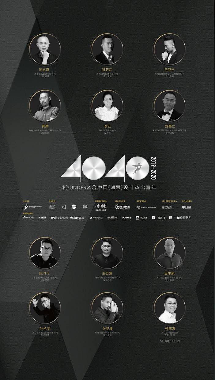 “40 UNDER 40中国(省区)设计杰出青年(2019-2020)”作为“40 UNDER 40 中国设计杰出青年(2019-2020)”的省区年度榜单(简称:“省区榜”),以省区为单位发布并表彰当地不超过40位40岁(含)以下的设计界具有杰出成就的青年领袖。今年40 UNDER 40覆盖33个省区,各省设计精英参与热情空前高涨。组委会继续秉承着以“择优”角度定义“宁缺毋滥”的原则,经过层层筛选,海南(陈志潇、符芳武、符亚宁、黄果、李云、龙丽仁、阮飞飞、王世道、吴中原、叶永明、张华灌、张啸霄)12位极具影响力的设计中坚力量荣耀入榜!