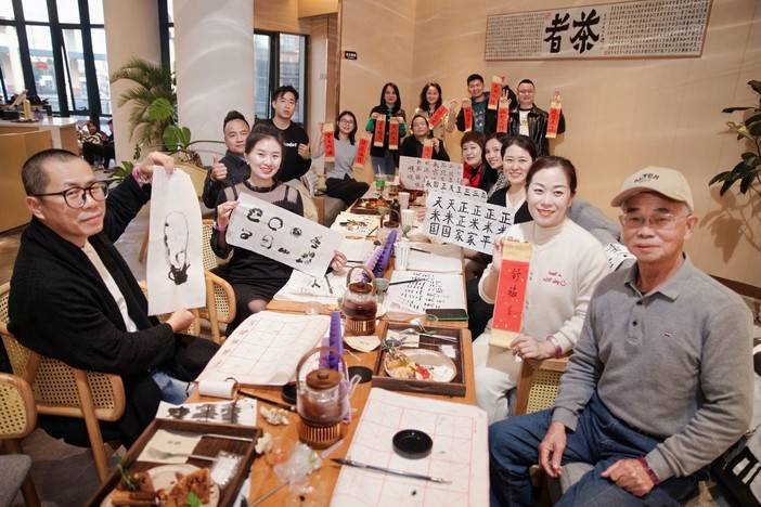 活动中,嘉宾们纷纷拿起毛笔与画笔,在宣纸与画布上挥毫泼墨、精心勾勒。他们用灵动的线条、绚丽的色彩,描绘心中对新年的美好期许与祝福,以别开生面的方式迎接新年的到来 ,为新的一年赋予浓厚的艺术氛围与美好寓意。